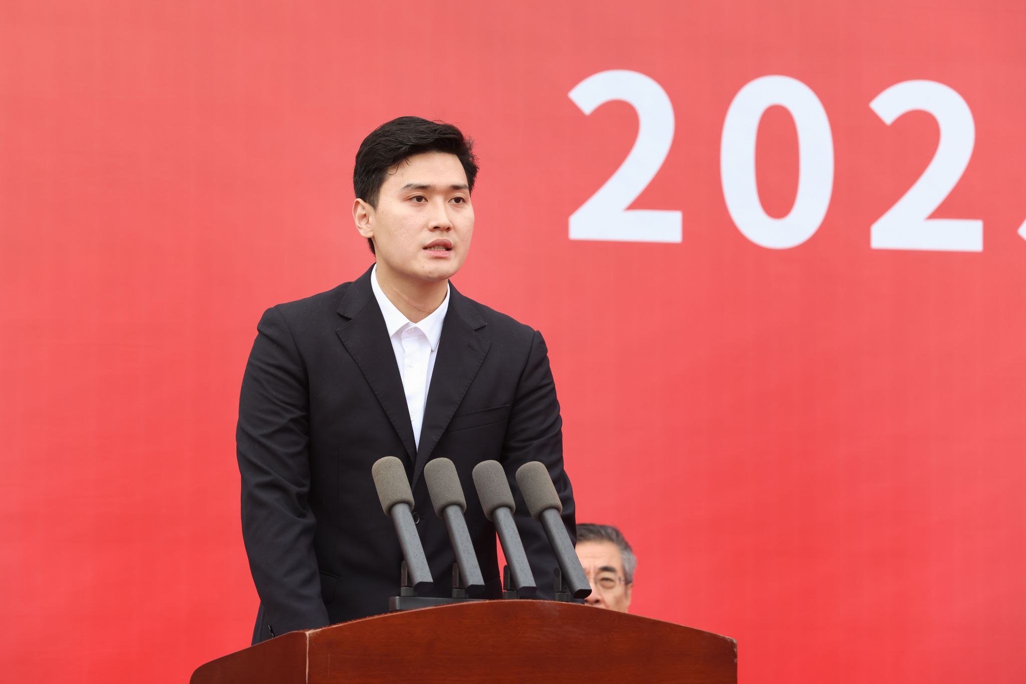 本科新生代表、智慧能源与环境学院吴允涵同学在发言时,以“博观而约取,厚积而薄发”感谢入学以来老师、学长、学姐给予的帮助支持,同时代表新生承诺,将秉承“博学弘德,自强不息”的校训精神,勇于尝试、不畏挑战,将个人理想融入学校发展与时代洪流,用青春智慧为母校续写荣光。