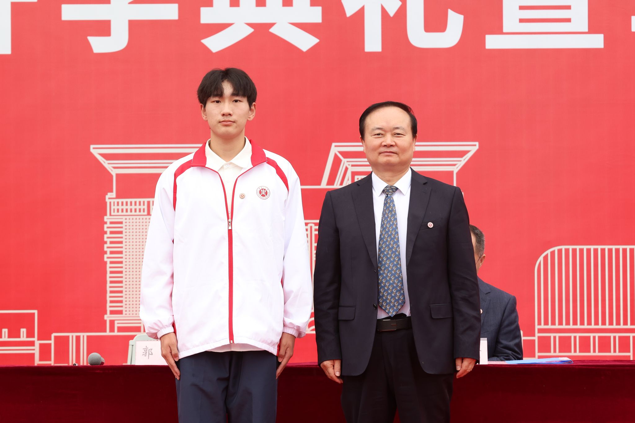 在典礼上,郭涛为2025级新生代表张明轩佩戴校徽。其他同学也同时郑重地将校徽戴于胸前,正式开启作为“中工人”的崭新身份。