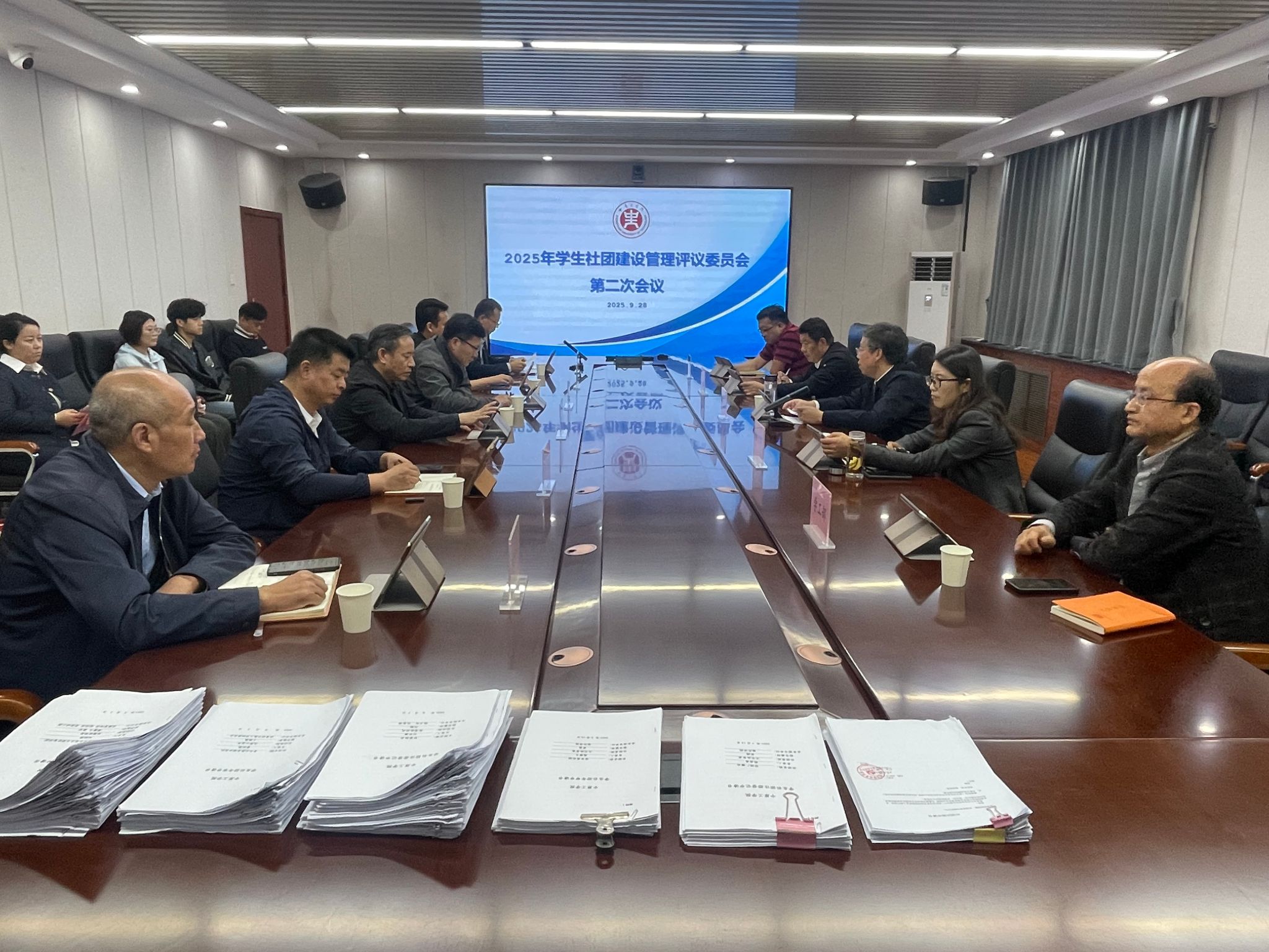 会议审议并通过了2024-2025学年学生社团年审情况、社团指导老师考核情况以及2025-2026学年学生社团注册登记、社团指导教师聘任等内容,并对社团下一步发展建设和重点工作计划提出意见建议。