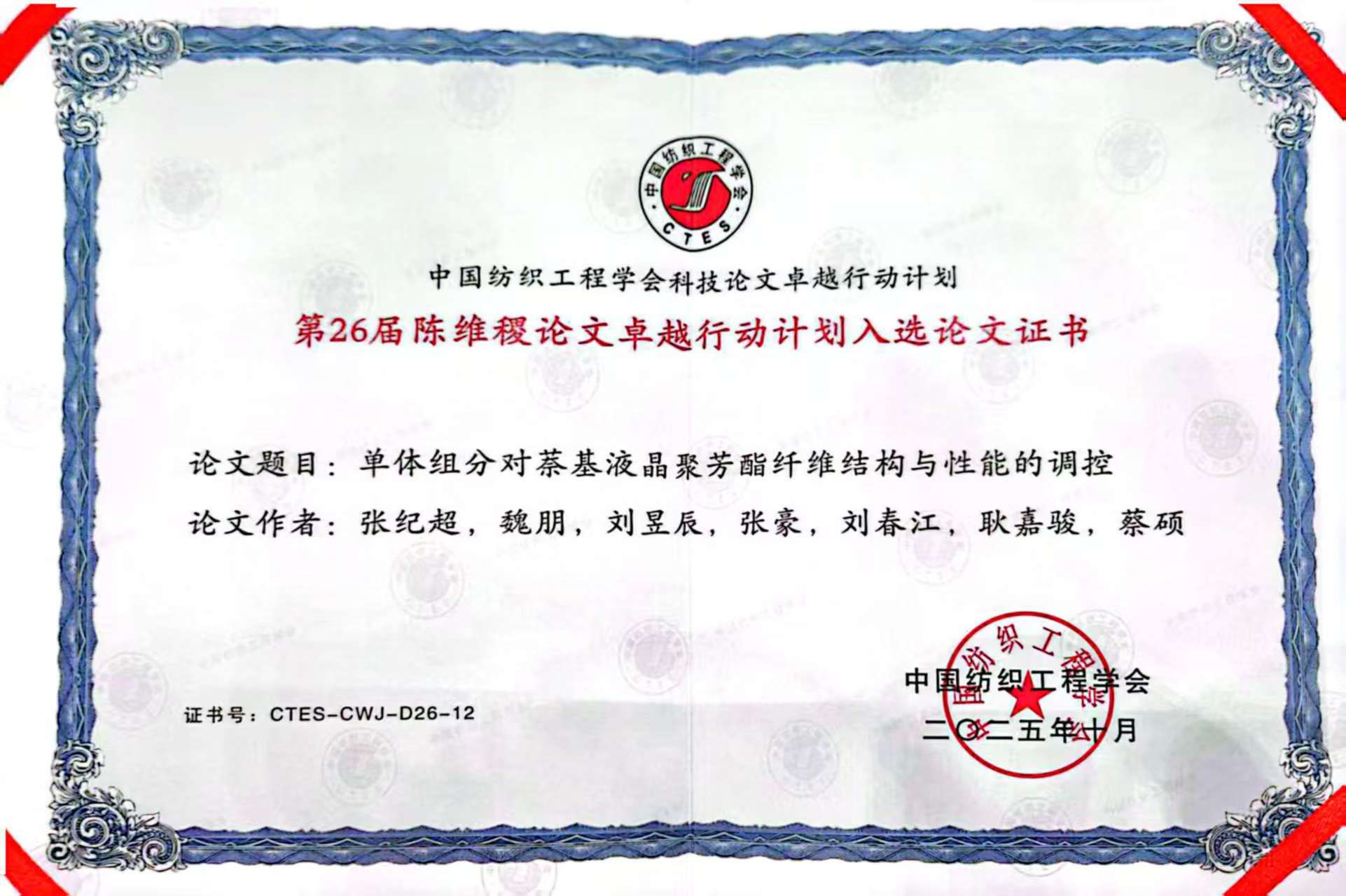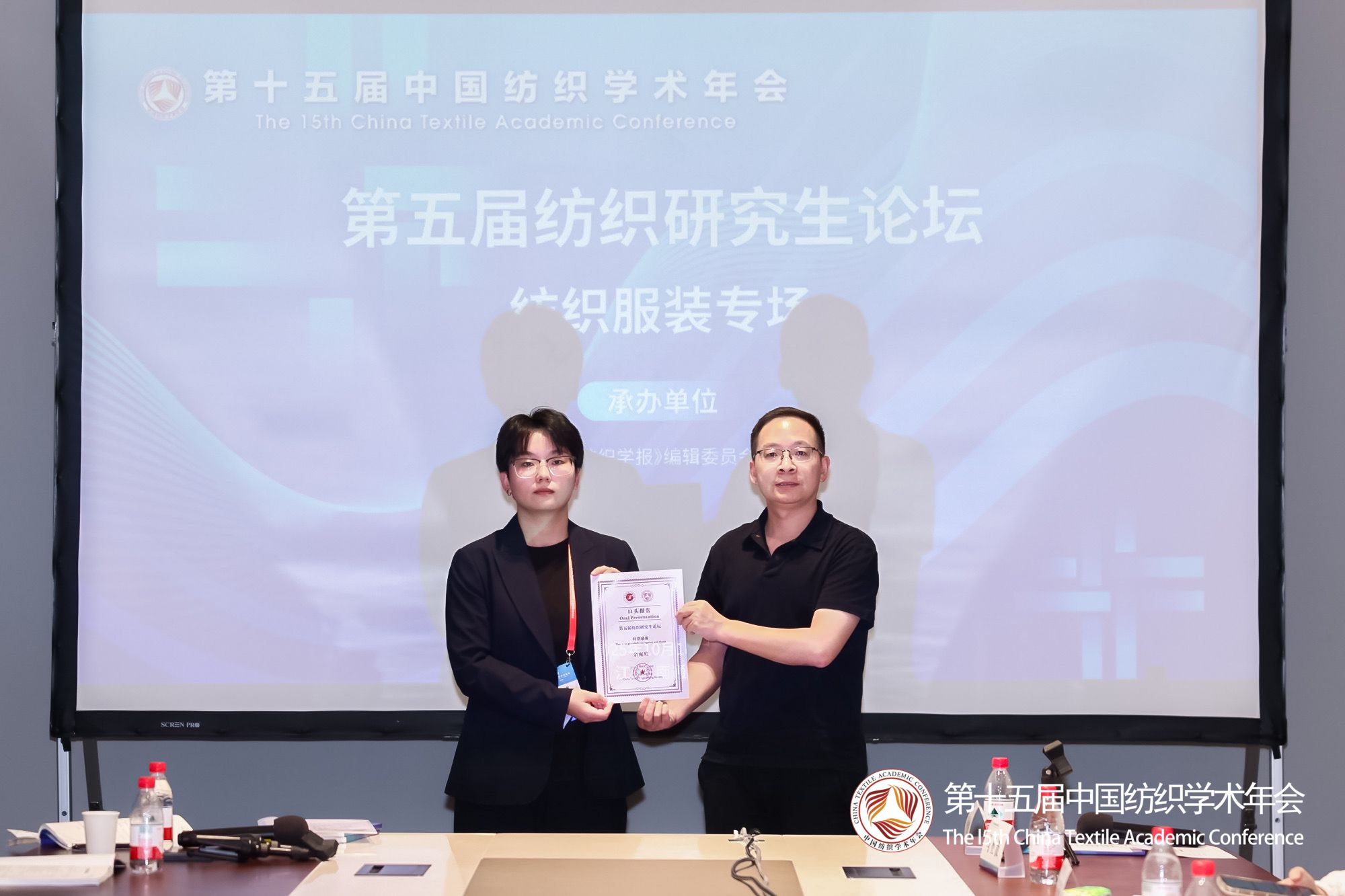 我校师生在本次年会中表现突出,张恒荣获纺织产业创新奖,魏朋指导的研究生论文《单体组分对萘基液晶聚芳酯纤维结构与性能的调控》入选第26届陈维稷论文卓越行动计划,任春雷、岳献阳的论文《溶胶-凝胶法界面增强玄武岩纤维复合材料的湿热稳定性》《黄麻织物基磁性含氮多孔碳对Cr(VI)的吸附性能》入围第26届陈维稷论文卓越行动计划。余宛婷在研究生论坛作题为《畲族传统纹样创新设计及数码印花纺织品应用》的口头报告,马闯和马静文进行墙报展示等。