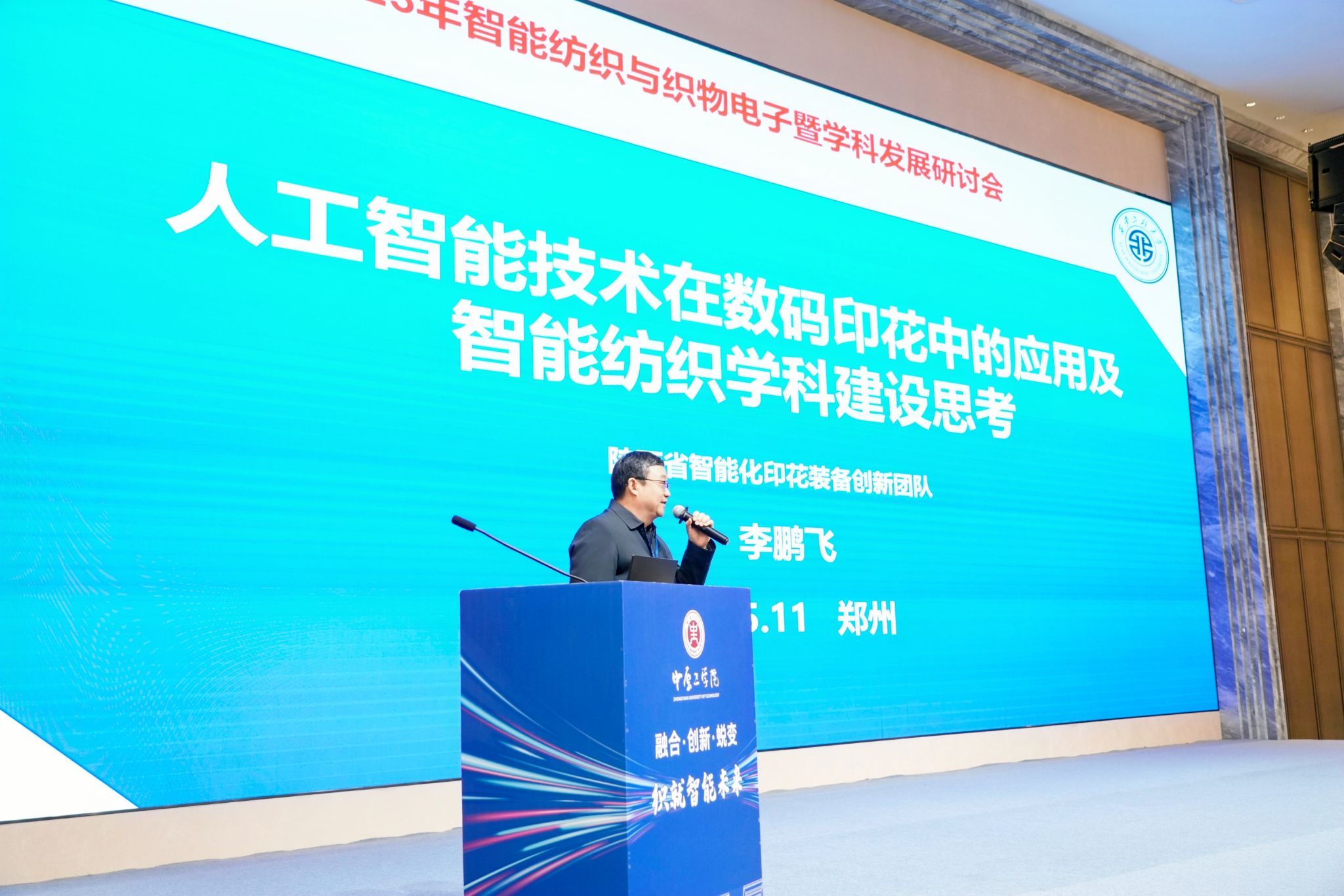 李鹏飞教授做《人工智能技术在数码印花中的应用及智能纺织学科建设思考》的主旨报告,指出人工智能技术已成为推动印染工业转型升级的核心驱动力,系统探讨生成式 AI 与数码印花图案设计的深度融合路径,重点分析 AI 在印染设备的关键应用前景。然后,从智能纺织学科建设视角出发,指出需以产业需求为导向,探索面向未来的智能纺织的跨学科人才培养方法。