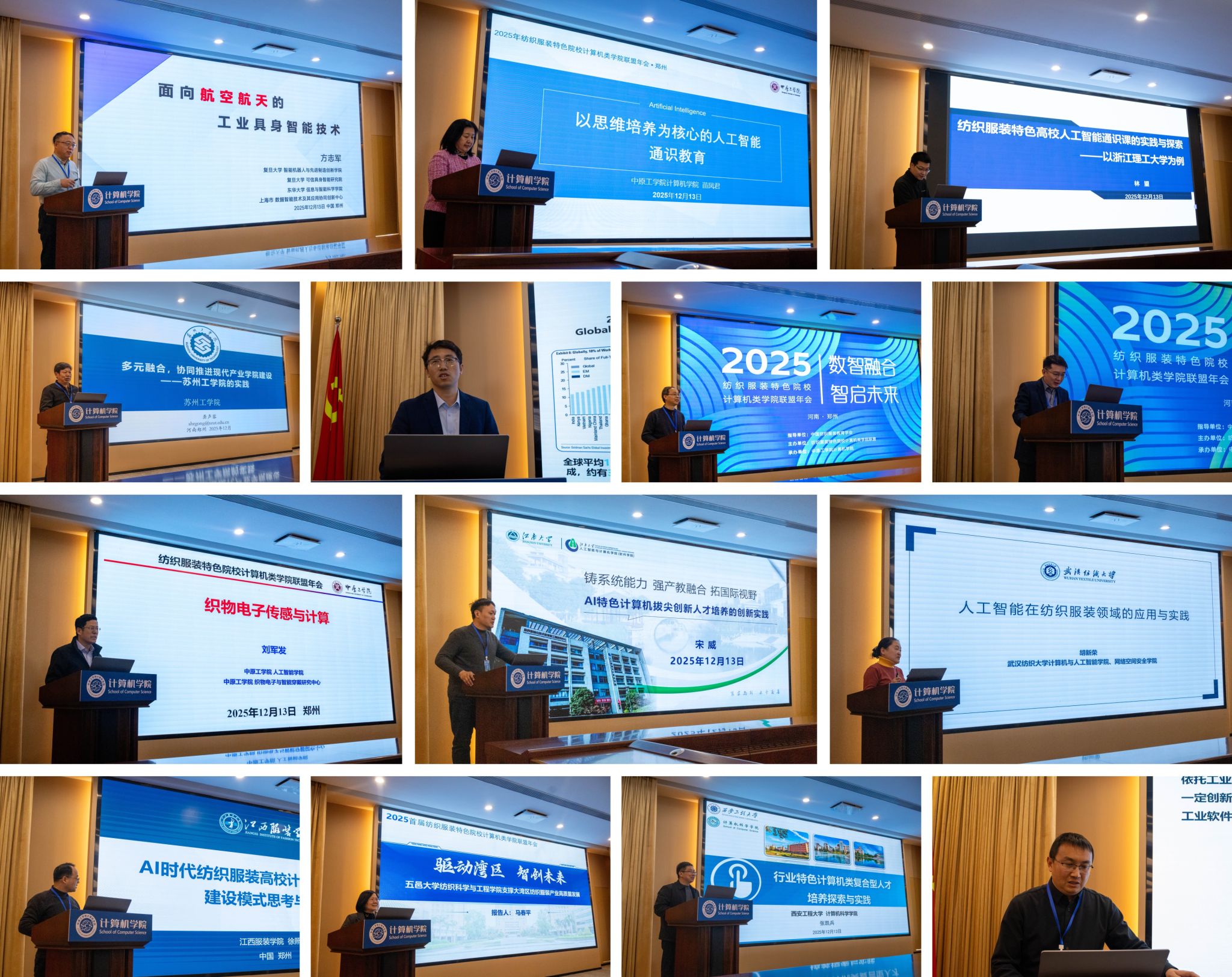 12月12日至13日,2025年纺织服装特色院校计算机类学院联盟年会在十八禁不卡国产在线播放龙湖校区举办。本次会议由纺织服装特色院校计算机类学院联盟主办、十八禁不卡国产在线播放计算机学院承办,以“数智融合、智启未来”为主题,旨在搭建跨院校、跨学科的协作平台,推动计算机技术与纺织服装产业深度融合,赋能行业数字化转型与高质量发展。
