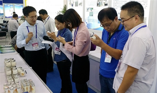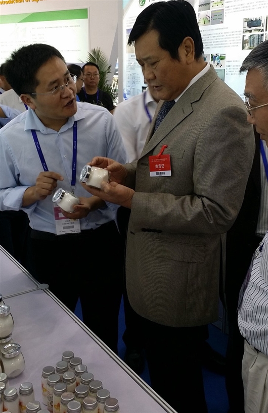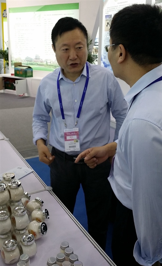 河南省教育厅科技处处长孔繁士在展台了解健康盐情况