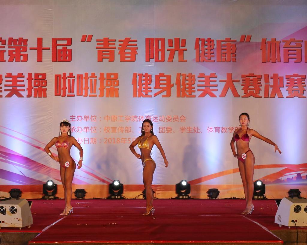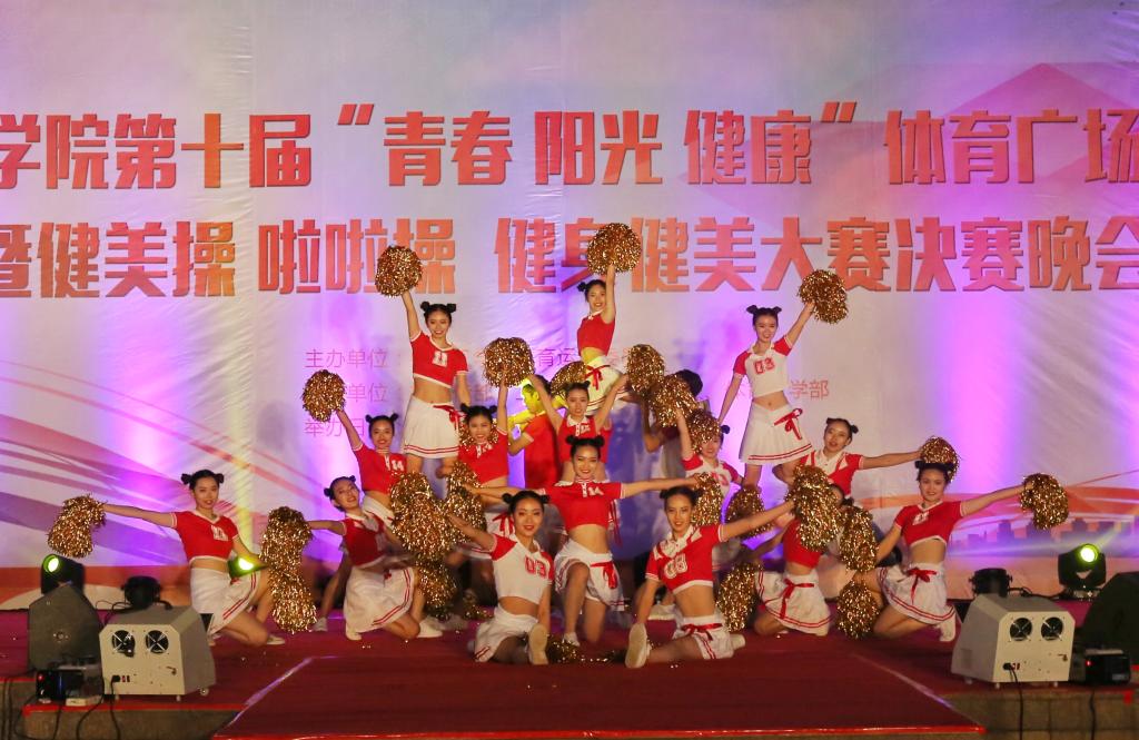 颁奖晚会上,进入最终决赛的8支健美操代表队和4支啦啦操代表队,在节奏欢快、动感十足的音乐声中和五光十色、色彩斑斓的灯影下,身影朝气蓬勃、动作整齐协调、舞姿欢欣跃动、队形灵活多变,为现场观众呈现了一场活力四射、青春洋溢、美轮美奂的视觉盛宴。在健身健美决赛中,男子健身健美比赛的A、B两组各6名选手,通过规定动作和自选动作项目,在场上尽情展现他们健硕发达的肌肉和协调舒展的力量,现场观众的叫好声此起彼伏;女子健身形体比赛的4位选手,肌肉线条细腻,身体比例优美,充分展现了力与美的结合。当曾获得国家各级各类比赛大奖的校健美队、健美操队出场带来精彩表演时,现场 呐喊声、喝彩声一片,近乎沸腾。