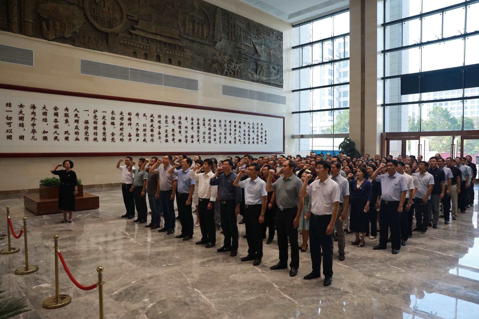 参观学习期间,王宗敏带领全体党员干部,在鲜红的党旗下庄严宣誓,重温了入党誓词,再次感受了作为一名党员所肩负的神圣职责和使命。