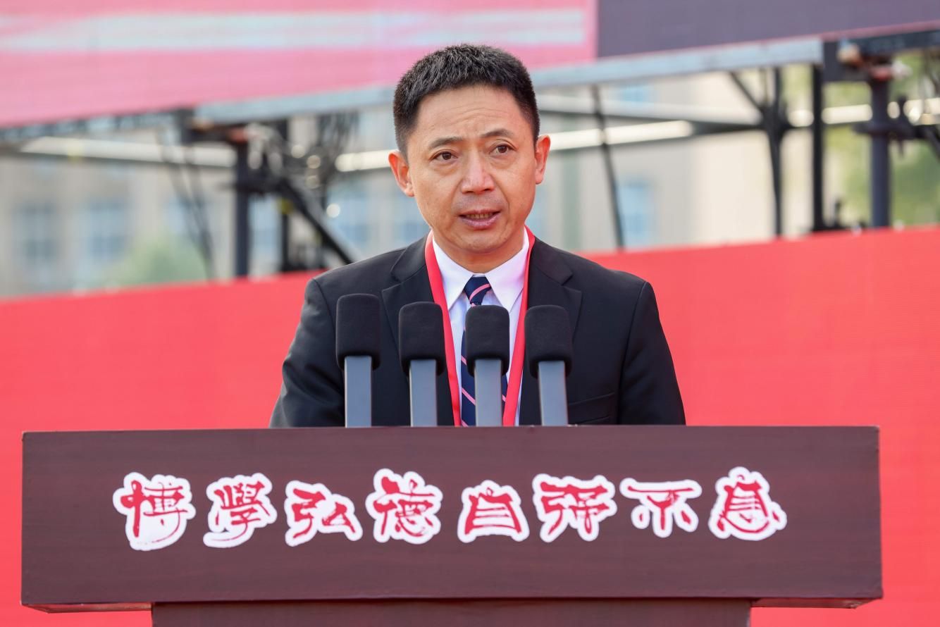 校友代表、江苏睿芯源科技有限公司董事长申文忠深情回顾了1989年进入母校工业电气自动化专业学习的经历。他表示,在母校“博学弘德 自强不息”的熏陶和培育下,“勤奋踏实、敢为人先、追求卓越”已经成为自己创业路上的精神底色。他寄语学弟学妹珍惜在校时光,夯实专业基础,锤炼创新精神,并祝愿母校再创辉煌。