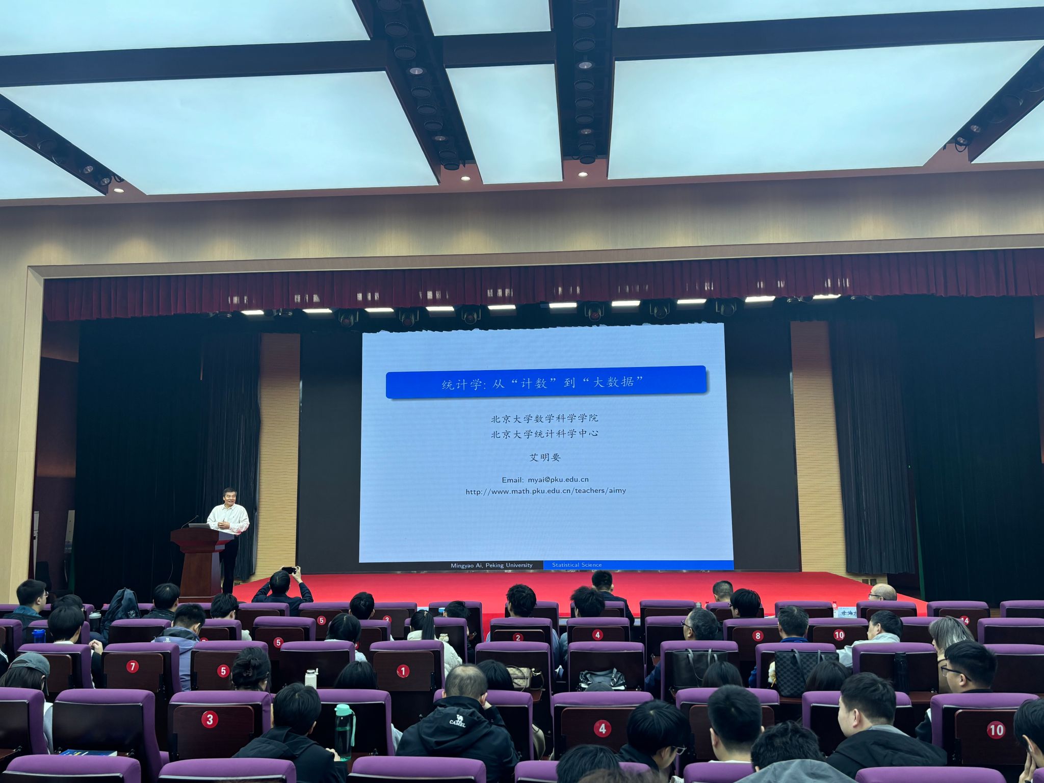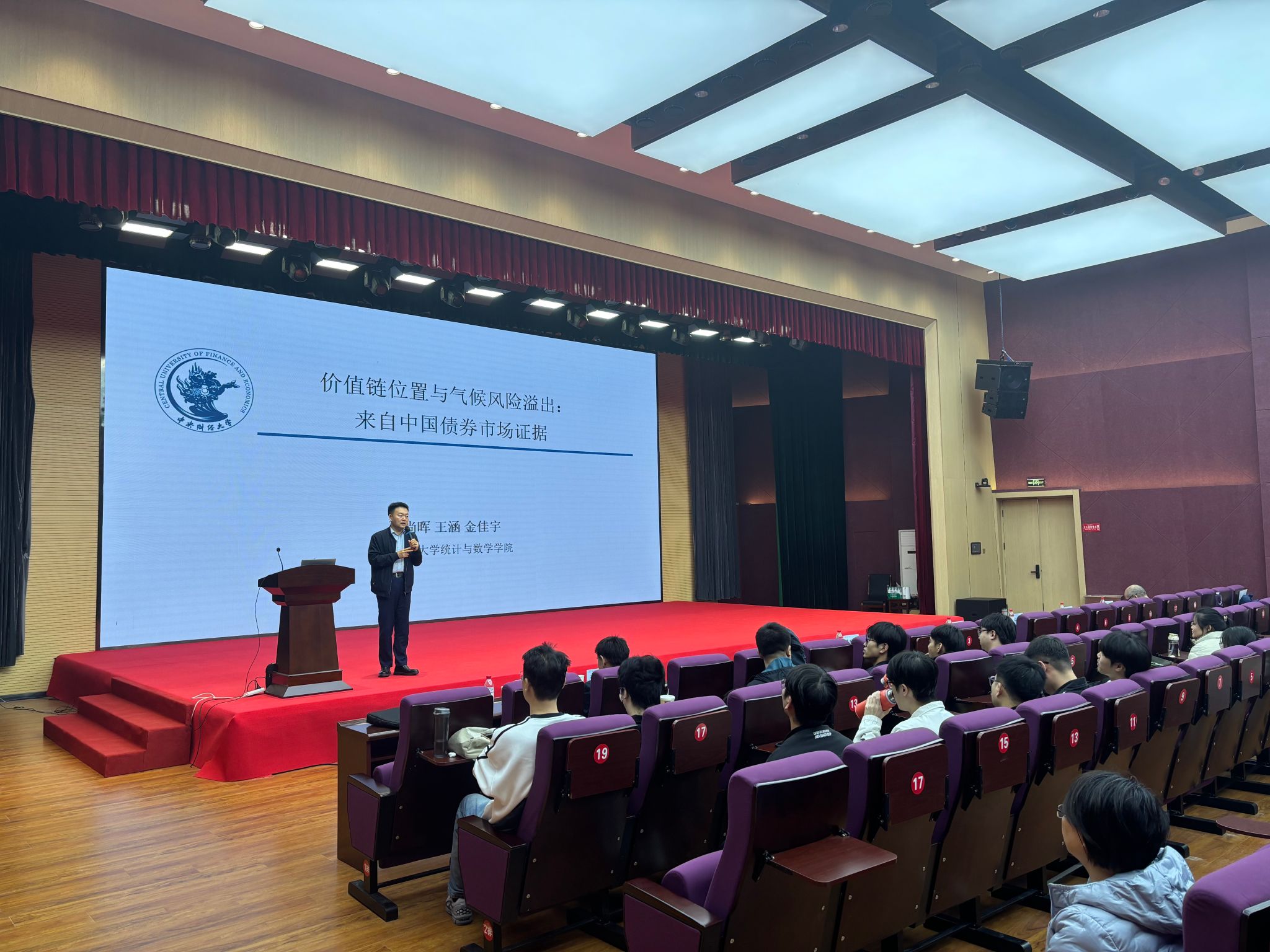 张雪松和闫振亚分别致欢迎辞,对各位专家的到来表示欢迎,同时强调了本次论坛对学科发展与人才培养的重要意义。在“应用统计学科建设论坛”主题报告环节,专家围绕学科前沿与研究生培养展开深度分享。艾明要教授以 “统计学:从‘计数’到‘大数据’” 梳理学科发展脉络,贾尚晖教授聚焦 “价值链位置与气候风险溢出:来自中国债券市场证据” 解析实践应用,刘定平教授结合地方需求探讨 “河南省统计学科发展现状与展望”,三场高质量报告兼具理论高度与实践价值,为我校应用统计学科建设提供了宝贵思路。