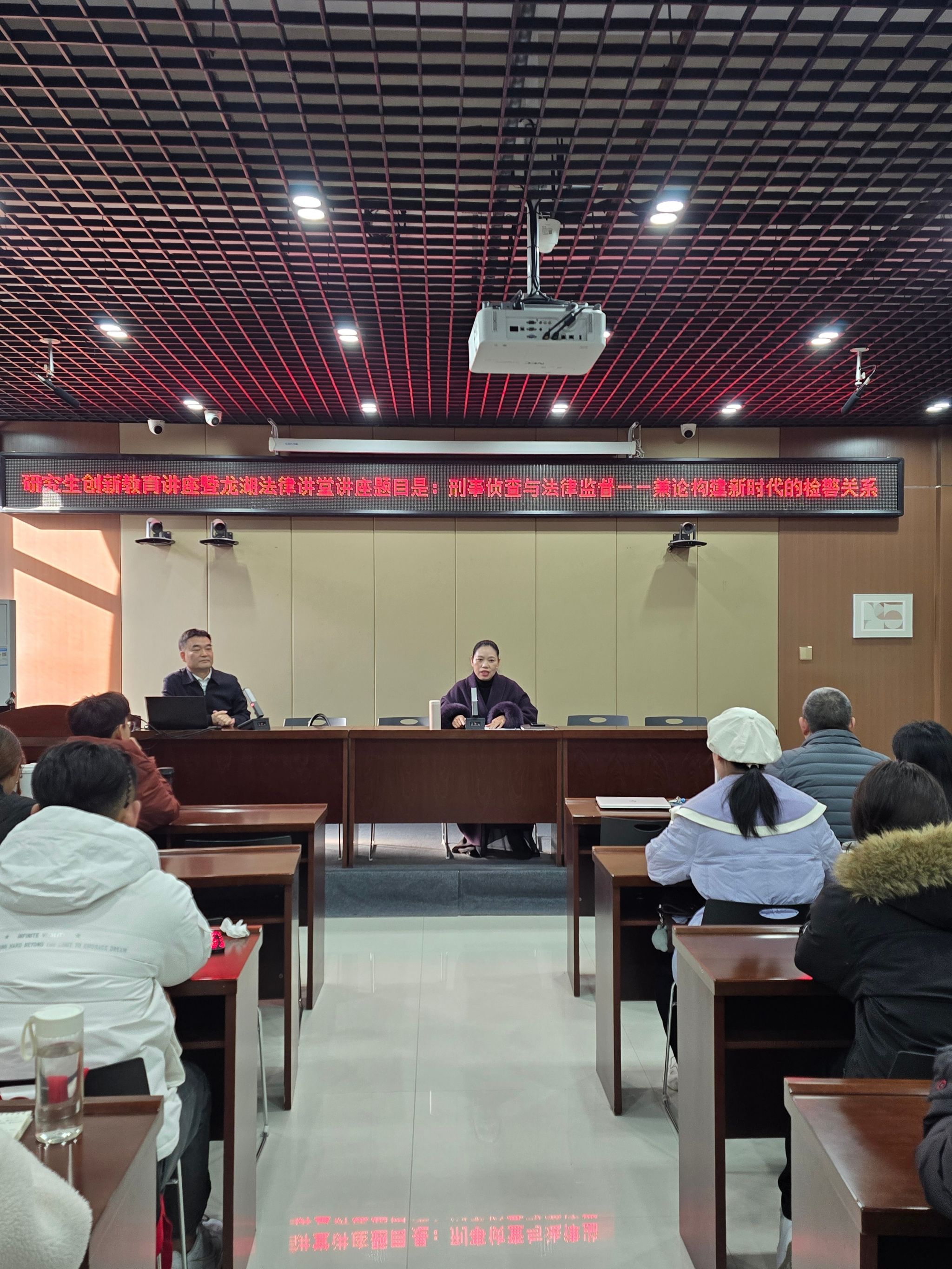 近日,受法学院(知识产权学院)邀请,河南省平顶山市人民检察院党组副书记、副检察长薛万庆于龙湖校区为师生作《刑事侦查与法律监督:兼论构建新时代的检警关系》专题讲座。此次讲座系我院研究生创新教育暨龙湖法律讲堂的重要活动,由法学院(知识产权学院)副院长张金艳教授主持,学院全体研究生参与并进行学术交流。